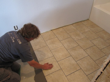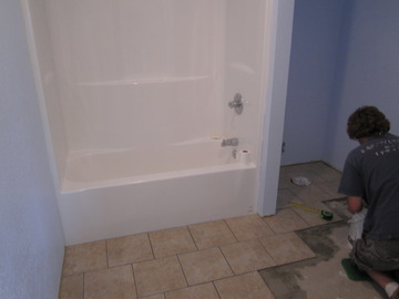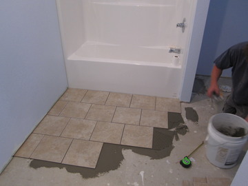 and buy some tile, and apply the tile and paint. Bob suggested a block pattern