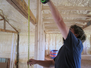 to spray a 2-part foam insulation product that goes on about 1/32" think and then expands about 4". With