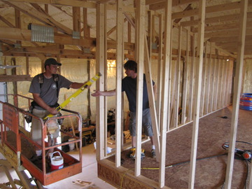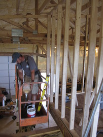upstairs, we had to build a wall that tied in to a truss that was pretty